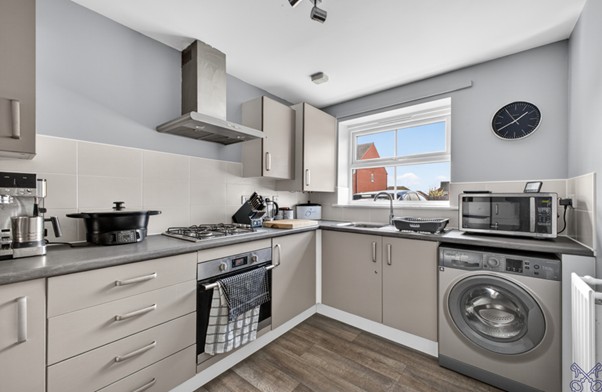 Step inside to a welcoming entrance hall leading to a contemporary kitchen, fitted with a range of wall and base units, laminate worktops, oven, hob, extractor hood, and combination boiler.